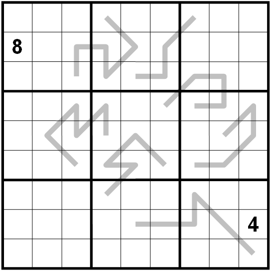 Place the digits from 1 tot 9 in every row, column and 3x3-block.