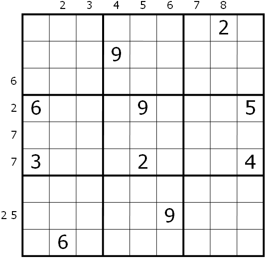 Place the digits from 1 to 9 in every row, column and 3x3-block.
