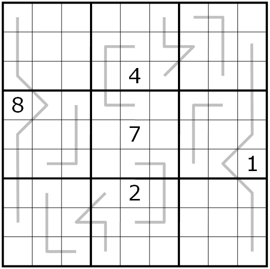 Apply classic sudoku rules. On every bold grey line the digits are ascending from one end to the other end.