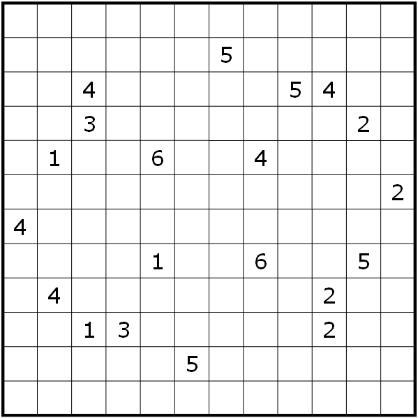 Place all twelve pentominos in the empty cells of the grid, so that they don't touch each other, not even diagonally. The numbers indicate how many of eight surrounding cells contain a pentomino part. The pentominos may be mirrored and/or rotated.