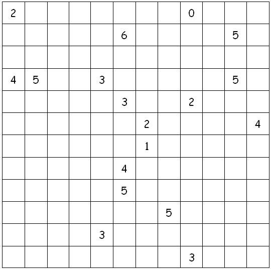 nicht diagonal. Die Zahlen geben (wie in einem Minesweeper-Rätsel) an, wieviele der horizontal,