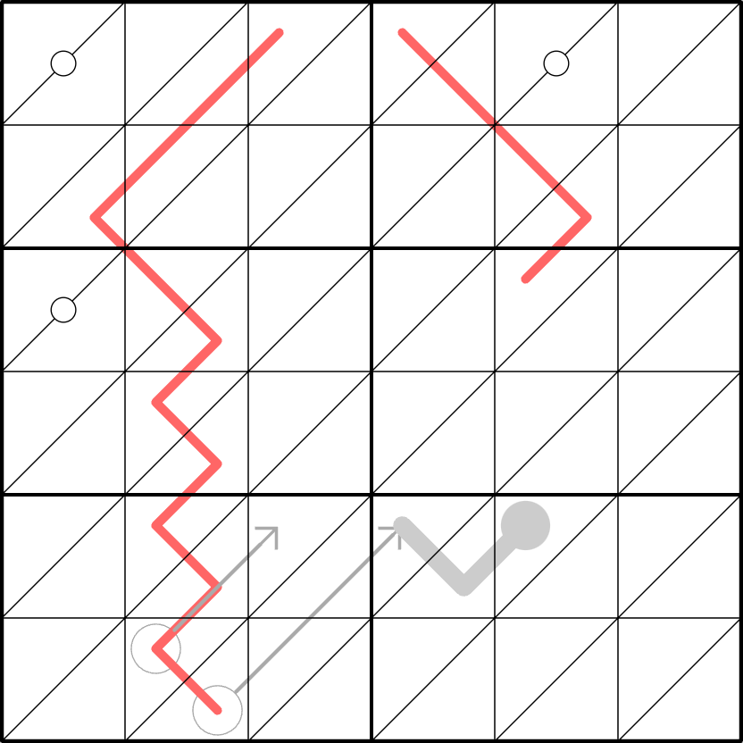 - Es gelten zweimal die normalen 6×6-Sudoku-Regeln. Das Raster sieht wie ein gewöhnliches 6×6-Sudoku aus, jedoch ist jedes Feld durch eine Diagonale von links unten nach rechts oben in zwei Dreiecke geteilt. Jedes Dreieck enthält eine eigene Zahl. Die unteren Dreiecke bilden zusammen ein vollständiges Sudoku (jede Zeile, Spalte und Box enthält die Ziffern 1–6 genau einmal). Dasselbe gilt unabhängig für die oberen Dreiecke.