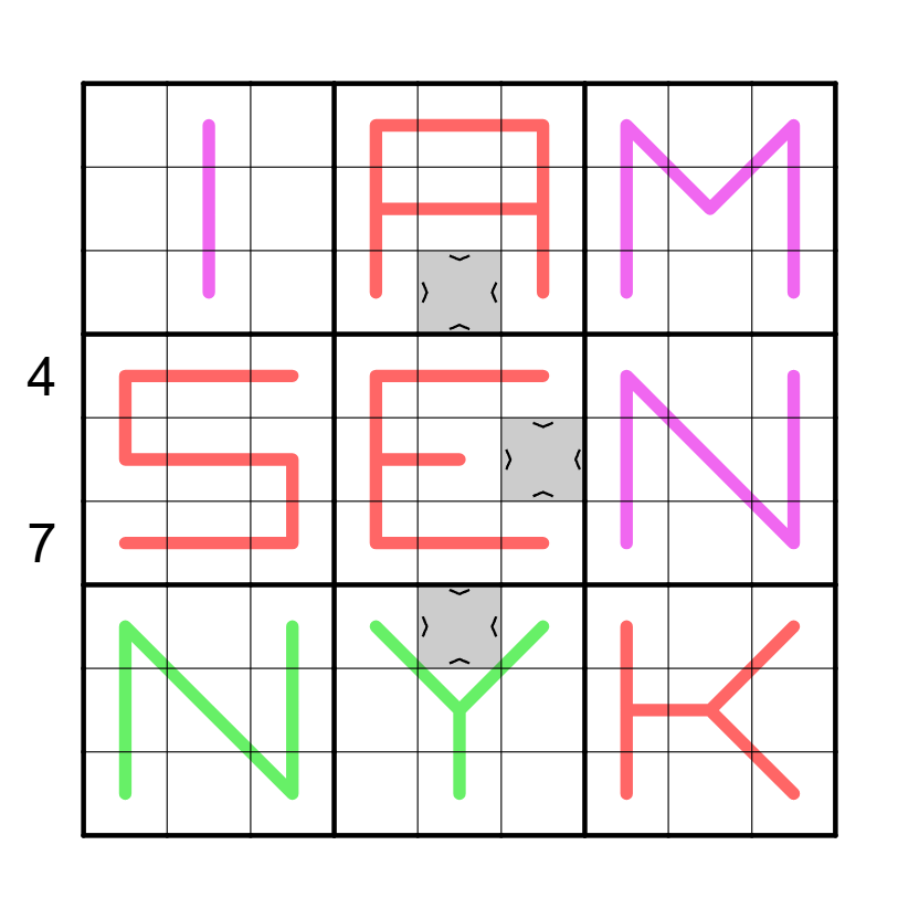 Renban: Digits along a purple line form a set of consecutive digits in any order.