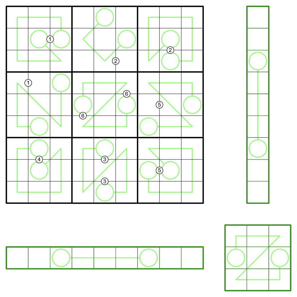 A cleverly designed Sudoku! Felt tough at first, but luckily I found a way. Still, it took me nearly 40 minutes to finish. I really love this one.