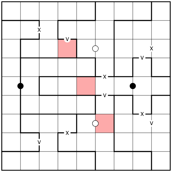 X/V constraint: Digits in cells linked by an X must add up to 10, and cells linked by an V must add up to 5.