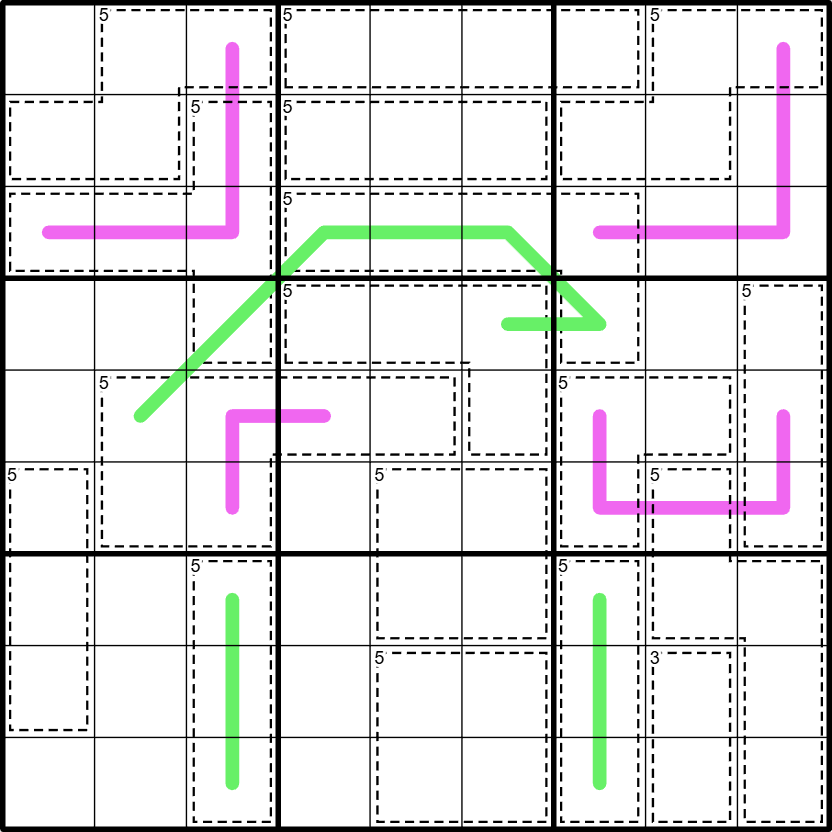 Renban Lines: Digits along a purple line form a non-repeating set of consecutive digits in any order.