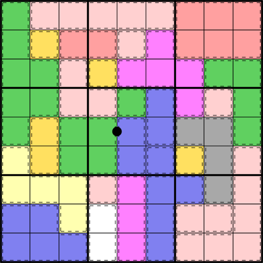 Numbers in each cage may not repeat and add up to a different total in each cage. The sums of the numbers in cages with the same colour have the same highest prime divisor.