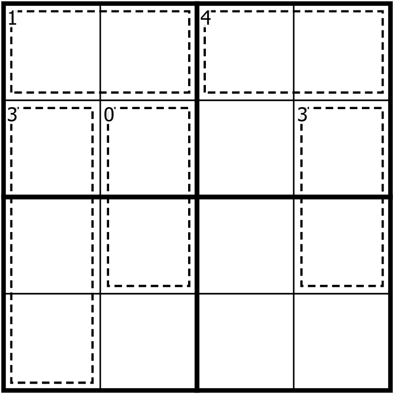 As an introduction to the rules, I have also created a 4x4 puzzle with the same ruleset. Play it below for a warm up: