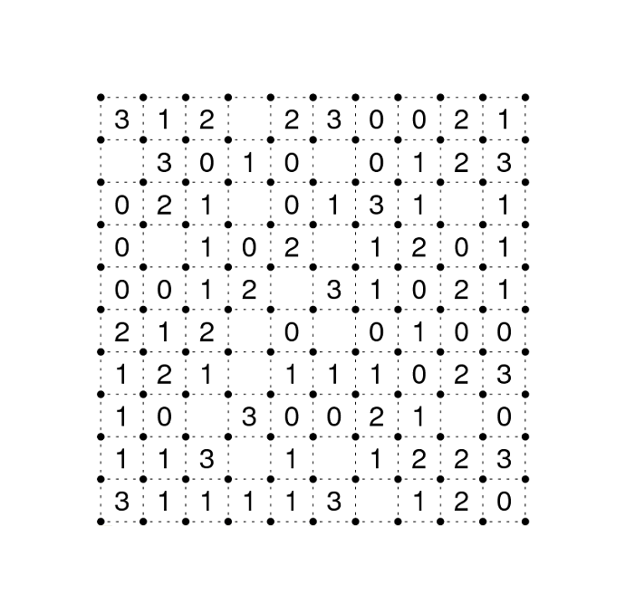 Solution code: the size of the areas (number of tile centers) outside of the loop, increasingly sorted
