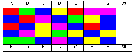 Ohne bisher allzuviel Zeit auf dieses Rätsel verwendet zu haben - vielleicht übersehe ich ja irgendwelche wesentlichen Ideen - scheint es mir darauf hinauszulaufen, einfach nur viele Fälle auszuprobieren, bis man schließlich eine Lösung gefunden hat. Und solche Rätsel halte ich, ehrlich gesagt, für Zeitverschwendung.