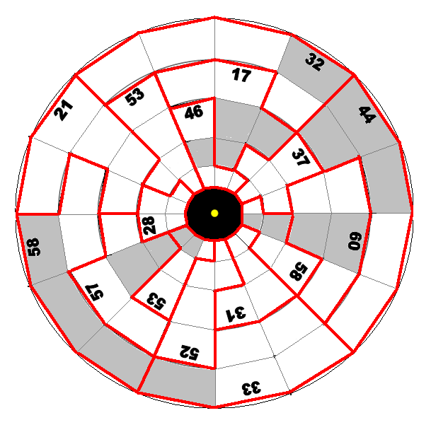 Solution code: Der innerste Kreis im Uhrzeigersinn mit der 1 beginnend.