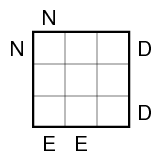 The letters at the borders indicate the letter that is seen first in the corresponding row or column. Of course, invisible letters are not seen at all.