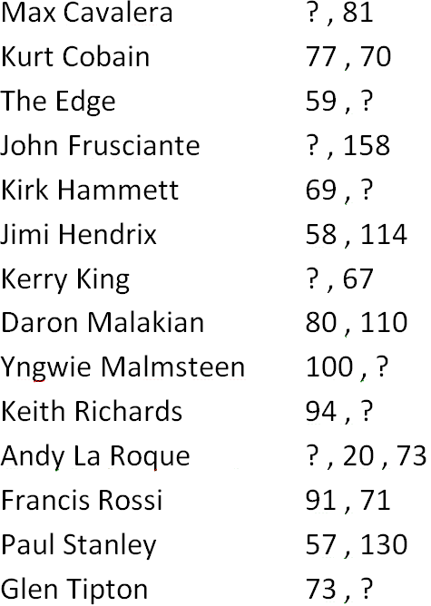 The following names are some of my rock- and metal-music "Guitar Heroes". Some of these names might be unknown to you, but they are certainly not unknown to me :-D