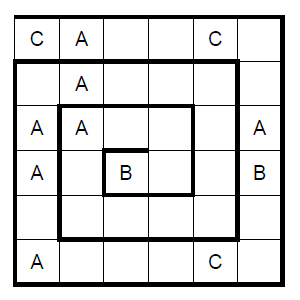 Solution code: The values of A,B,C, followed by row 3 and column 4. Use "-" for empty cells.