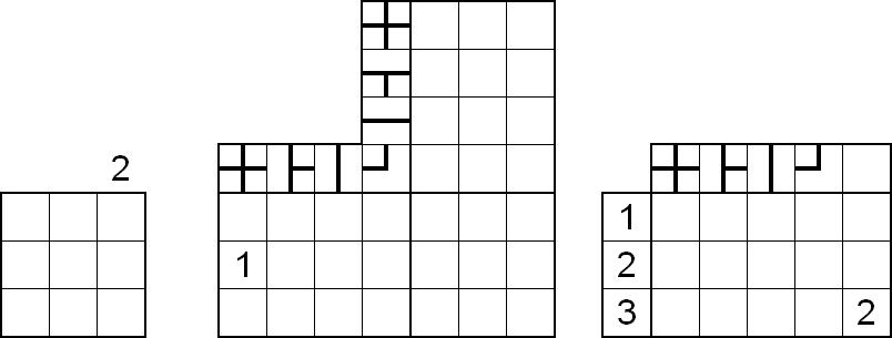 Nach einem Vorschlag von r45, die dritte Abbildung um eine Leerfelderspalte zu ergänzen, habe ich versucht ein Rätsel zu konstruieren, bei dem auch Informationen über die Anzahl der Leerfelder unter den Hochhäusern einer bestimmten Höhe vorkommen. Hier ist das Ergebnis, es gibt auch eine neue Beispielaufgabe, ansonsten sind die Regeln unverändert.