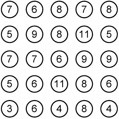 Wenn du im sich ergebenden Rundweg in jeden Kreis die korrekte Zahl einträgst (Ich nenne sie mal Rundwegzahlen.), dann ist jede der im Diagramm vorgegebenen Zahlen die Summe aller orthogonal benachbarten Rundwegzahlen.