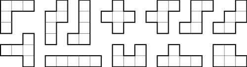 White areas are Pentominoes and each Pentomino exists exactly once in the grid. Pentominoes may be rotated and mirrored. Six blackened cells are given (grey cells).