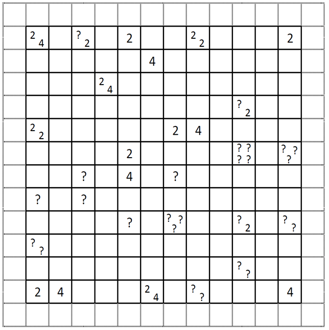 "I'm horribly delayed with finishing my Christmas present for my colleague this year and now furthermore my keyboard is striking AND my printer has troubles doing the margins correctly", you can hear one of Santa Claus' helpers cursing in a living room of the puzzle world. Well, the 2 and the 4 still function, but that's it. Anyway, may all clue digits might be replaced by question marks.
