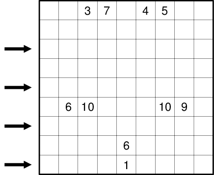 The numbers indicate the sum of the lengths of all such chains where at least one shaded cell is horizontally, vertically or diagonally neighbouring to the numbered cell.