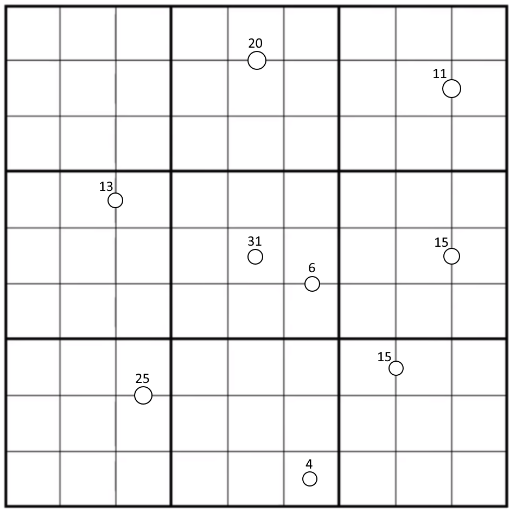 ~Contrary to a classical galaxy puzzle, not every cell in the grid has to be part of a galaxy.