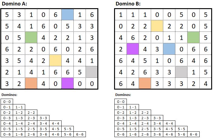 Solution code: the amount of Domino pieces row by row; first for Domino A, then for Domino B