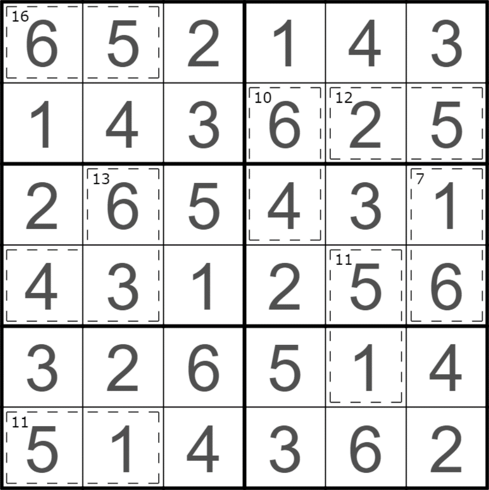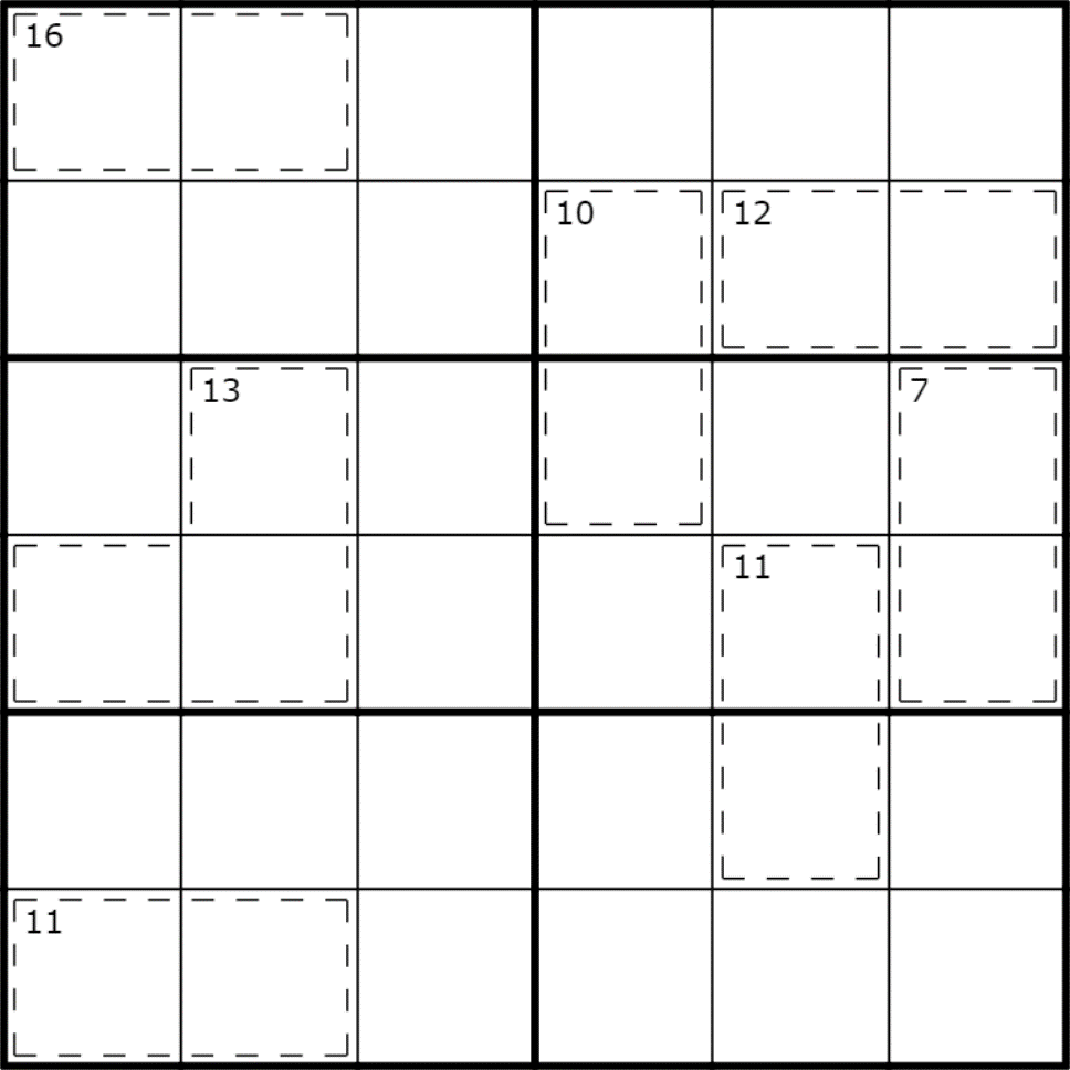 Here is an 6x6 example to demonstrate the last rule. Notice that the digit 5 is counted as a 10 in all killer cages. Try the example puzzle in SudokuPad.