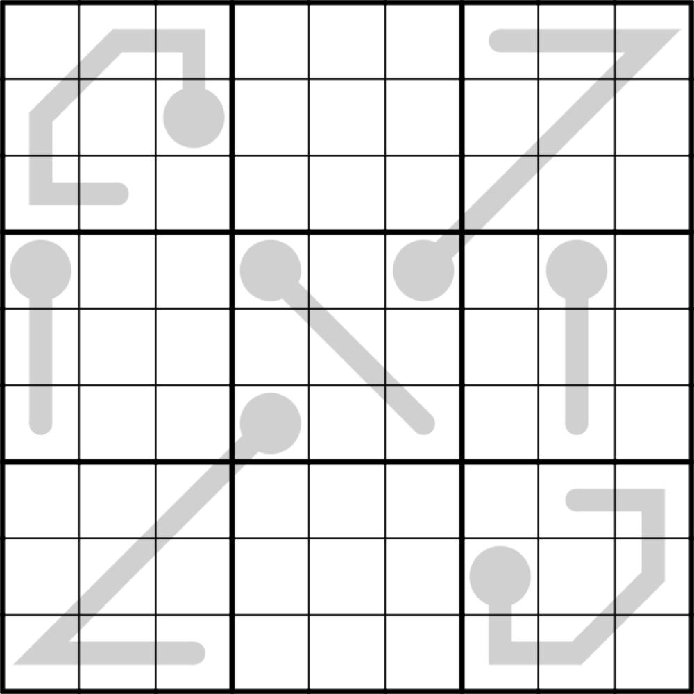 -Looking glass rules (new!) apply. Each digit (1-9) has a "buddy" that appears in all of the cells where the row and column indices are swapped. For example, if 1's are buddies with 4's and there is a 1 in r5c2, then there must be a 4 in r2c5. Ones being buddies with fours implies that fours are buddies with ones. It's possible for a number to be it's own buddy. Figuring out the buddies is part of the puzzle.