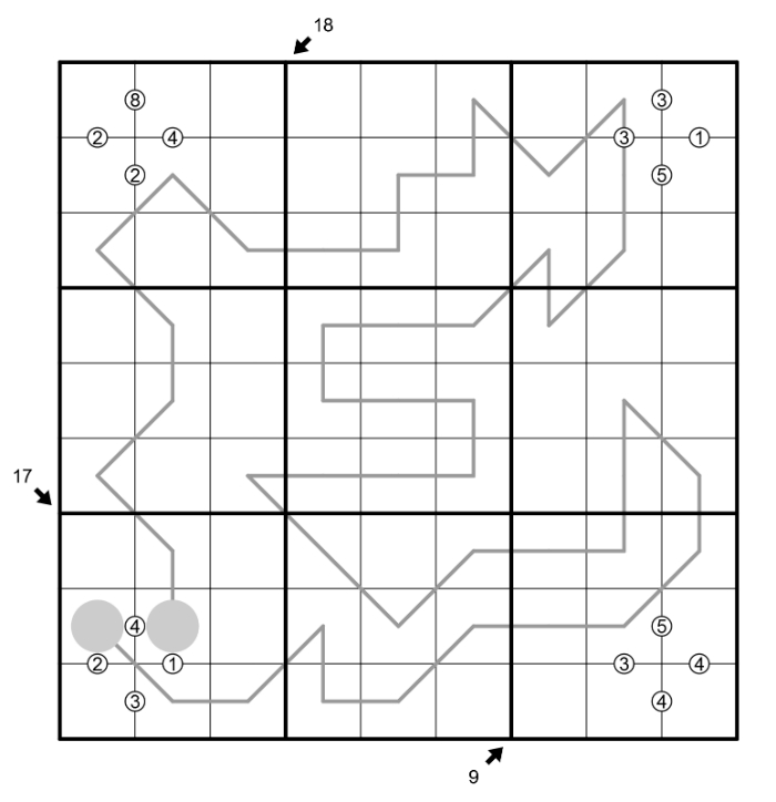 And Circles With Numbers in the grid indicate the absolute value between the two given cells.