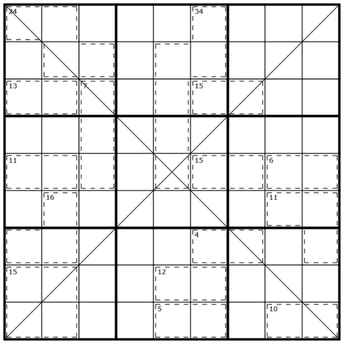 Standard Sudoku Rules apply to the final numerical layout. And digits may not repeat along the main diagonals.