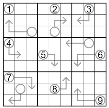 5. Numbers in circles indicate the sum of digits along the arrow.