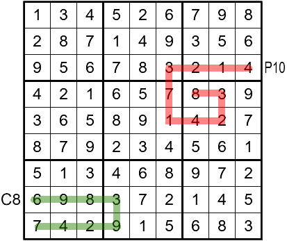 There are penguins and camels running around in this sudoku. A clue outside the grid that begins with a P is a penguin clue. If a square has a penguin clue next to it, it means a penguin begins its journey in that square. The clue tells you how many squares the penguins will visit, including the starting square.