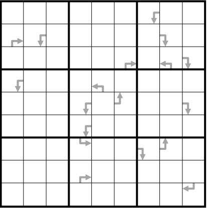 the same digit N, where the digit in the cell with the arrow indicates how many cells the digit N is away from