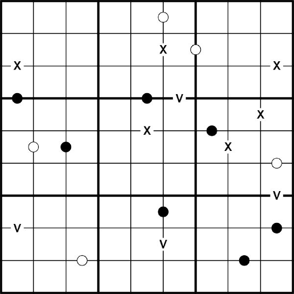 -Neither Kropki Pairs nor XV has a negative constraint. Dominoes without X, V or dot may still sum to 5 or 10, be consecutive, or be in a 1:2 ratio.