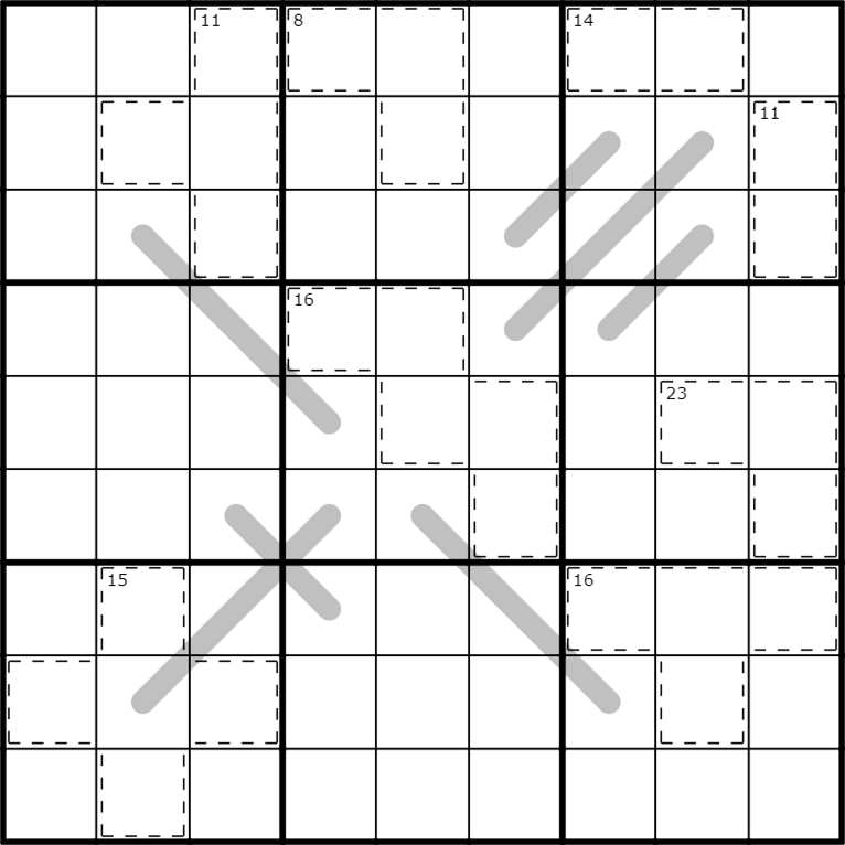 Digits in cages do not repeat and sum to the small number in the top left corner of the cage.