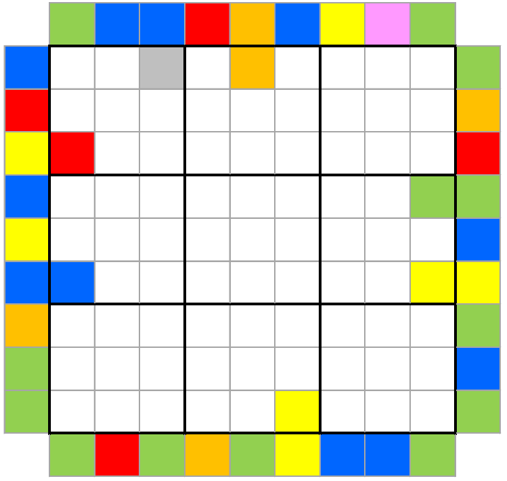 Colored cells which are the same color must contain the same digit. Differently colored cells must contain