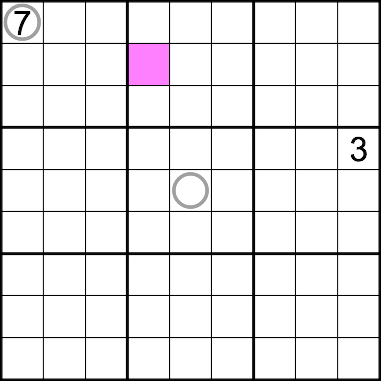 Each row, column and 3x3 box contains the digits 1 to 9.