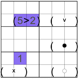 The ordered (5, 2) in box 1 means that there must be a 1 in the Row5 Column 2. (note: this may not be the actual digits in those cells if you try the puzzle!)