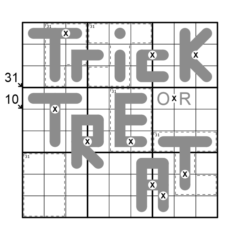 My only confusion was with the "large letters" in the first 3 rows. Originally I though that only the T and the K in TricK could not contain 1 or 3 (i.e. large == uppercase).