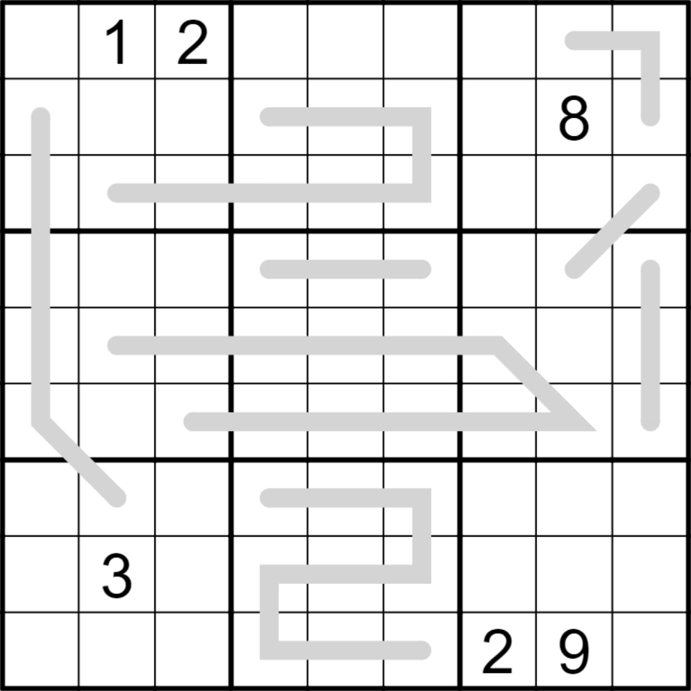 Rules: Normal sudoku rules apply. Along thermometers (lines), digits must increase from the bulb end.