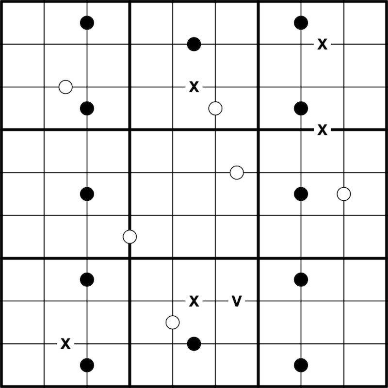 Not all possible Xs, Vs, and dots are given.