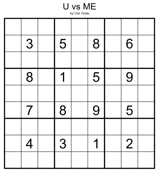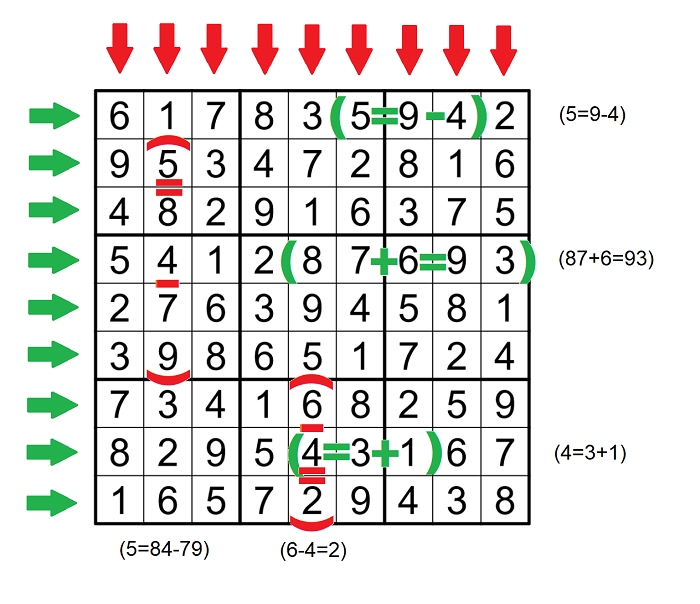 Your job is to solve the sudoku (numbers 1-9 in each row/column/box) without it being possible for me to find mathematical equations