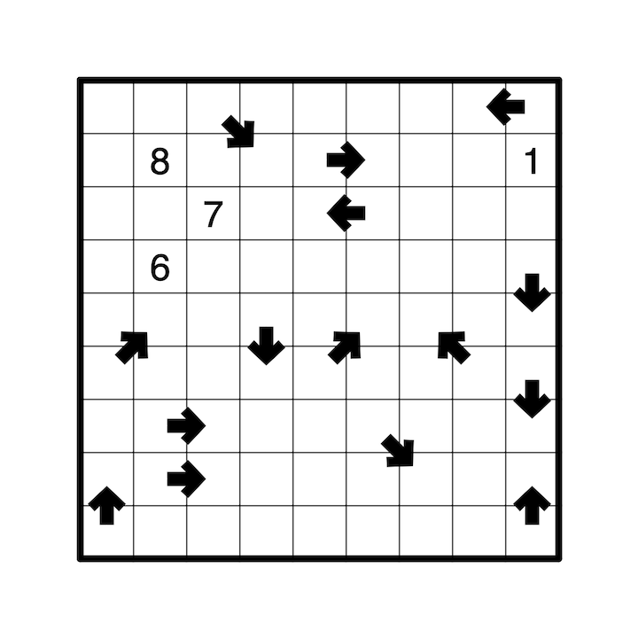 Beautiful puzzle! I really like the logic regarding the diagonal arrows. Thanks:)
