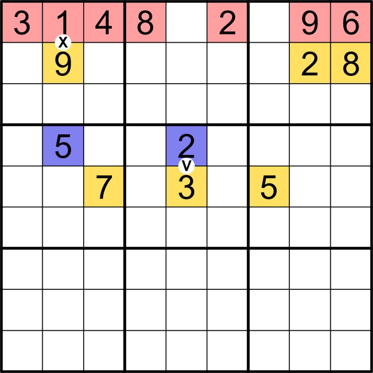 For the X clue, the order of the cycle of the 1 in R1C2 is 7, and the order of the 9 in R2C2 is 3, and 1+9=7+3=10