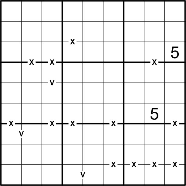 In addition to normal XV rules, the orders of cycles of cells separated by a V sum to 5, and the orders of cycles separated by an X sum to 10.