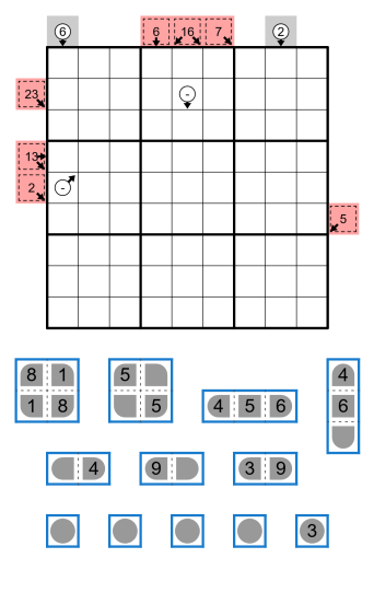 I made this for Zetamath's Coloring Challenge! I haven't seen battleship sudoku combined with little-killer-esque clues before so I'm excited to see how this is received! Thank you DarthParadox, Nebula, and mathpesto for testing :)