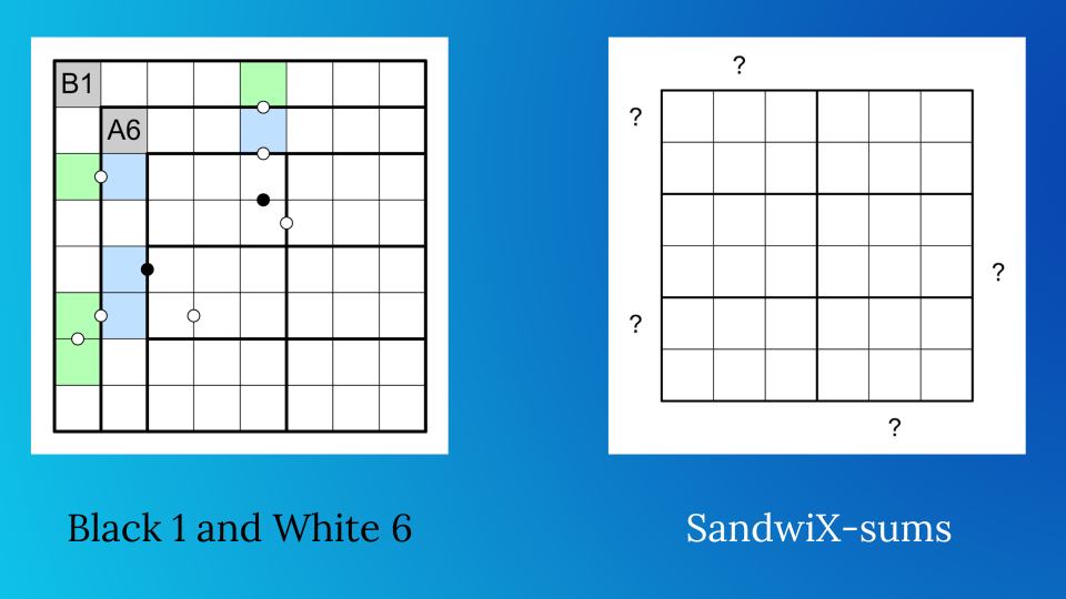 6) SandwiX-sums : All ? clues outside the grid are both X-sums clue and sandwich clue.