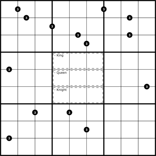 In this puzzle there are 3 anti-king, 3 anti-queen and 3 anti-knight digits. These digits must not see an identical digit by their assigned chess move.