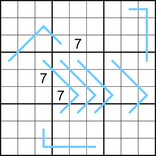• Region Sums: Digit(s) on a line sum to the same total in each 3x3 box that the line passes through