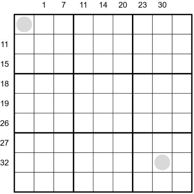 Sehr elegantes Setting durch die beiden aufsteigenden Zahlenfolgen. Und nicht zu schwer. Ein tolles Puzzle! Dankeschön.