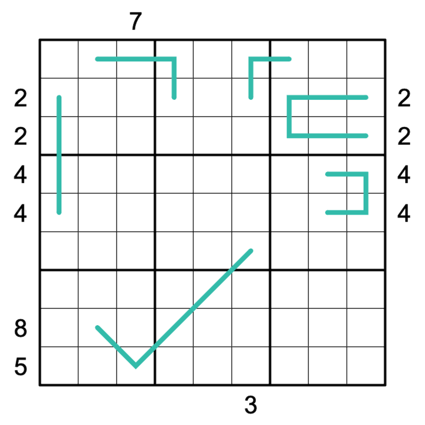 Modular Lines: On teal modular lines, every set of three contiguous cells contains one digit from {147}, one from {258}, and one from {369}.